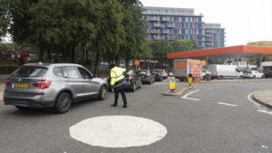 Fotoğrafta, Kuzey Batı Londra’da bulunan Sainsbury’s benzin istasyonu ve çevresindeki yoğunluk görülüyor.