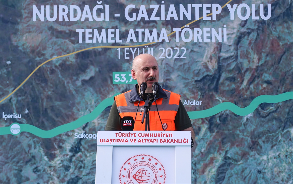 Nurdağı-Gaziantep Yolu'nun ağır taşıt trafiğinin Mersin ve İskenderun limanlarına ulaşımdaki ana arterlerden biri olduğunu belirten Karaismailoğlu, "Bu nedenle yolumuzu 54 kilometre uzunluğunda, 2×2 şeritli, bitümlü sıcak karışım kaplamalı bölünmüş yol standardında projelendirilerek yapım çalışmalarına başlıyoruz." sözlerini sarf etti.