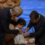 Gösteriyi izleyen Bakan Yumaklı, sahneye davet ettiği çocuklara fidan hediye edip, yakalarına "Orman Dostu Rozeti" taktı.