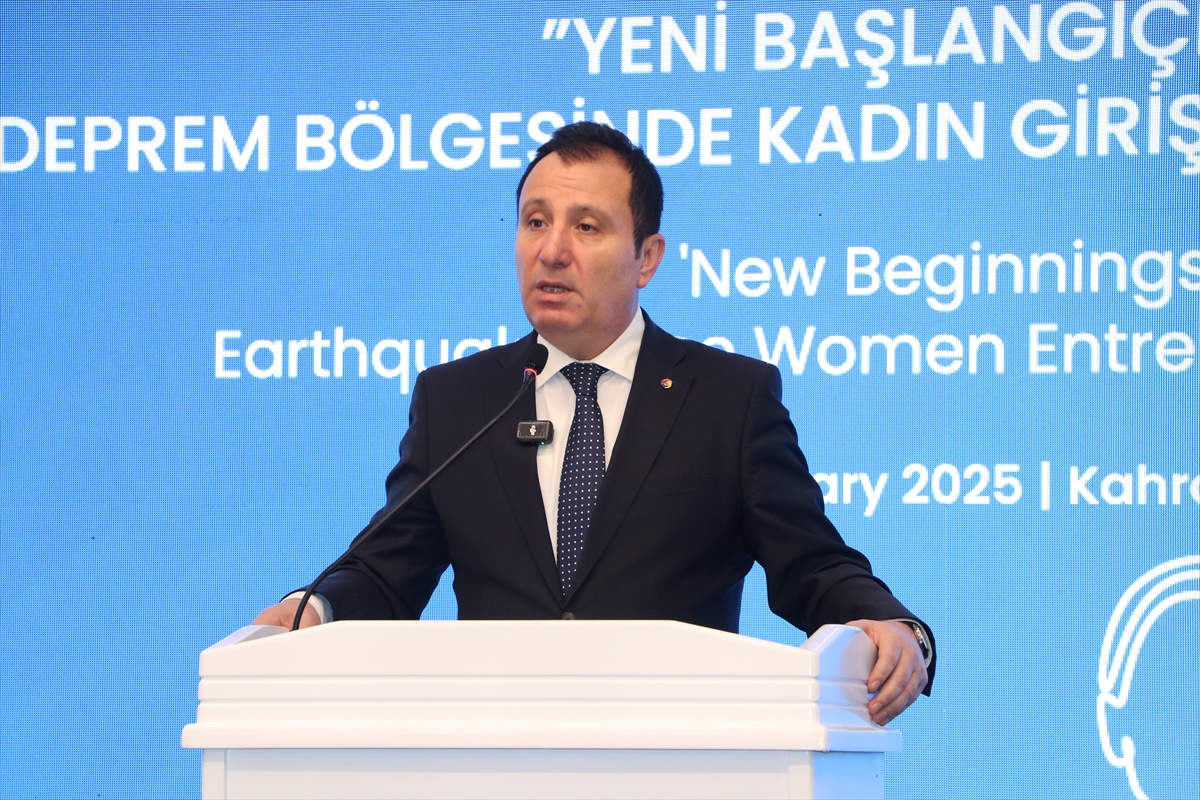 KOSGEB Başkanı Ahmet Serdar İbrahimcioğlu, programda yaptığı konuşmada, 6 Şubat 2023'teki depremlerin ardından kadın girişimcilere verilen desteğin önemine işaret etti.