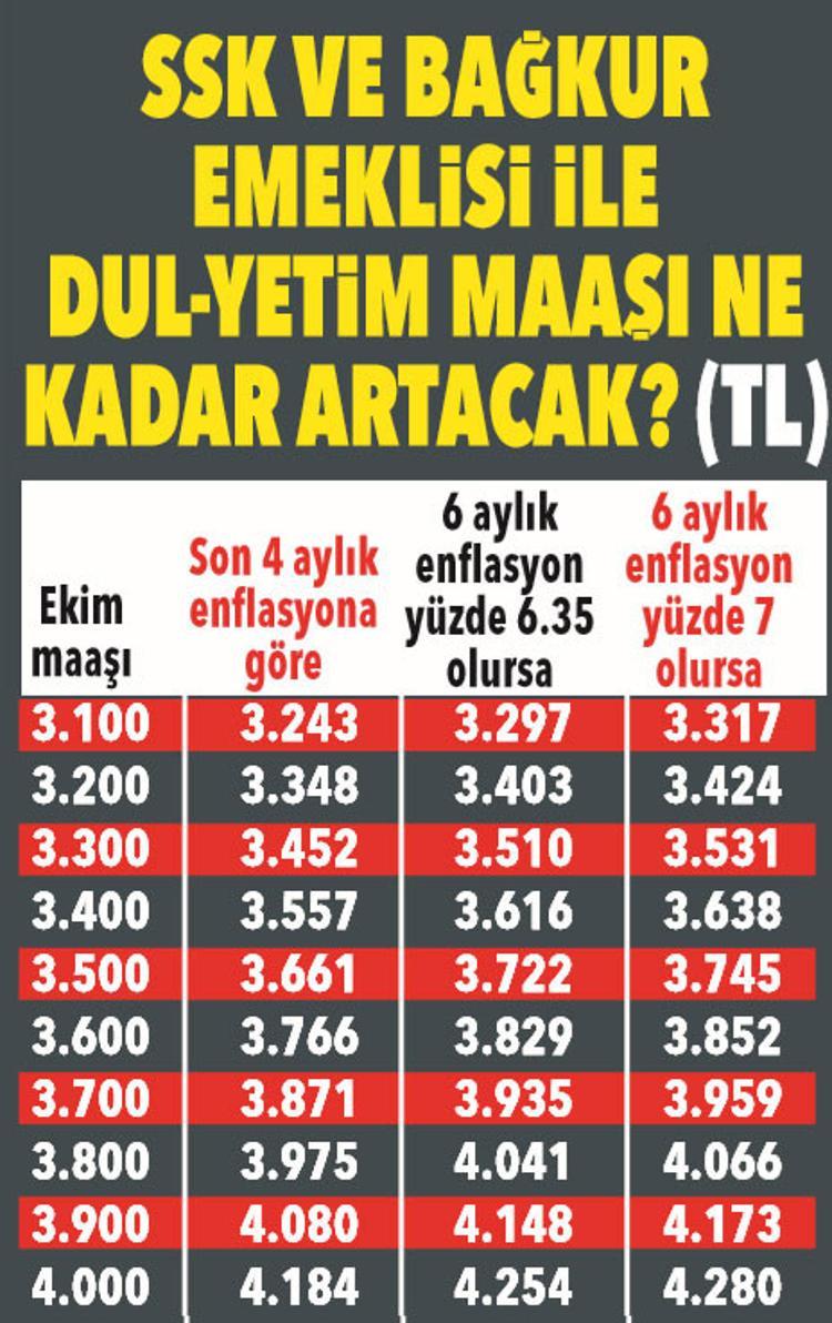 Son 4 aylık enflasyona göre memura ve memur emeklisine fark, SSK ve Bağkur emeklisine yüzde 5 zam görünmüştü.