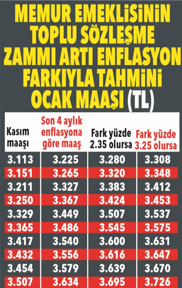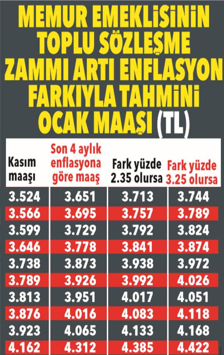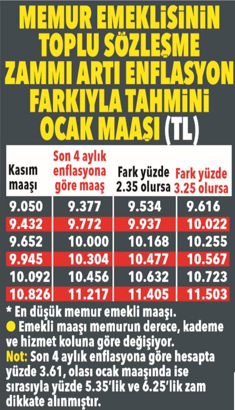 Memurların ve emeklilerin maaşları 6 ayda bir artırılıyor. Yıl sonu yaklaşırken enflasyonla ilgili beklentilerin yükselmesi, maaş artışıyla ilgili hesapları yeniden gündeme getirdi.