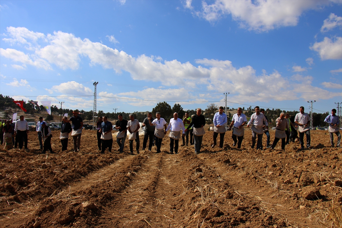 Konuşmaların ardından tohumların çiftçilere dağıtımı yapıldı. Bölgedeki bir üreticinin arazisinde de tohumlar toprakla buluşturuldu.
