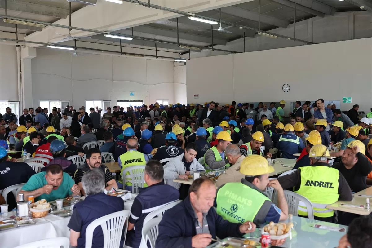 Oktay ve Dönmez, termik santraldeki işçilerle yemek yedikten sonra yetkililerden brifing aldı.