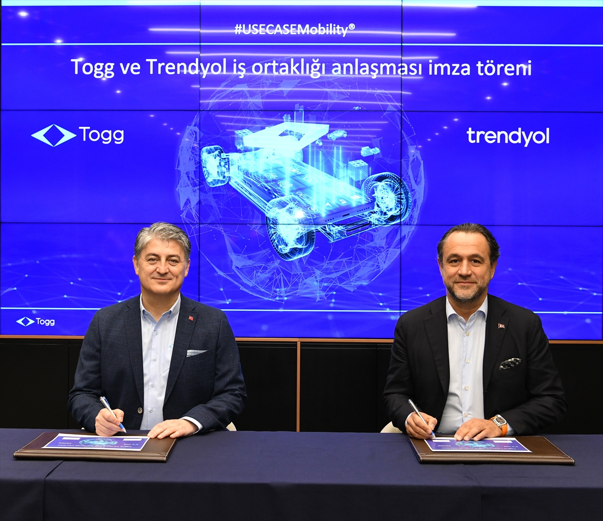 Trendyol’la imzaladığımız niyet mektubu ile kullanıcılar mevzuata uygun biçimde hem Togg’un hem de Trendyol'un hizmetlerinden yararlanabilecek. Bu iş birliğinin hayata geçirilmesiyle kapıdan kapıya e-ticaretin yanı sıra, kapıdan Togg akıllı cihaza, Togg akıllı cihazdan rota olarak belirlenen adrese gibi seçenekler ortaya çıkacak." ifadelerini kullandı.