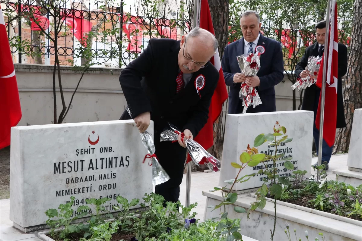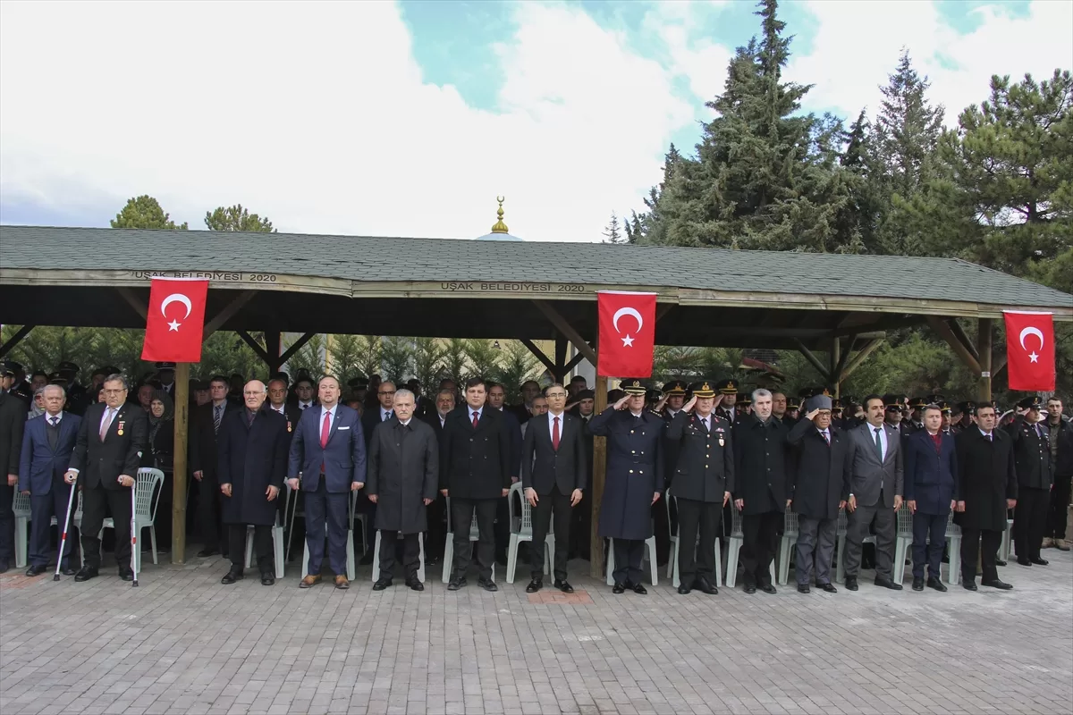 Uşak'ta Şekerevleri Şehitliği'nde düzenlenen programda, Vali Yardımcısı Muammer Balcı ve Uşak Belediye Başkanı Mehmet Çakın tarafından anıta çelenk sunuldu.
