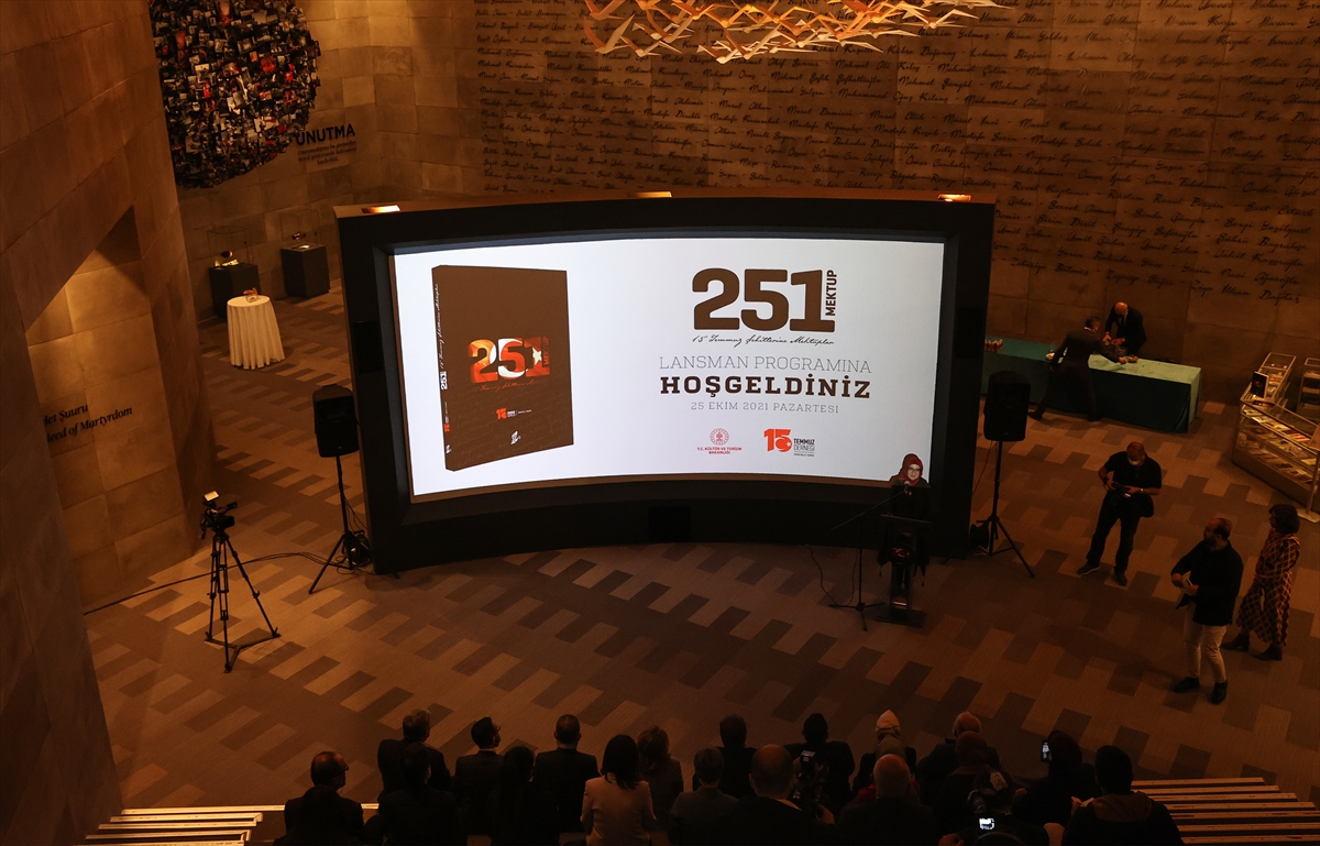 İSTANBUL (AA) – 15 Temmuz Derneği ve Okur Kitaplığı iş birliğiyle 15 Temmuz Darbe Girişiminin 5. yıl dönümünde yayın hayatına kazandırılan "251 Mektup / 15 Temmuz Şehitlerine Mektuplar" kitabının basın tanıtımı yapıldı.