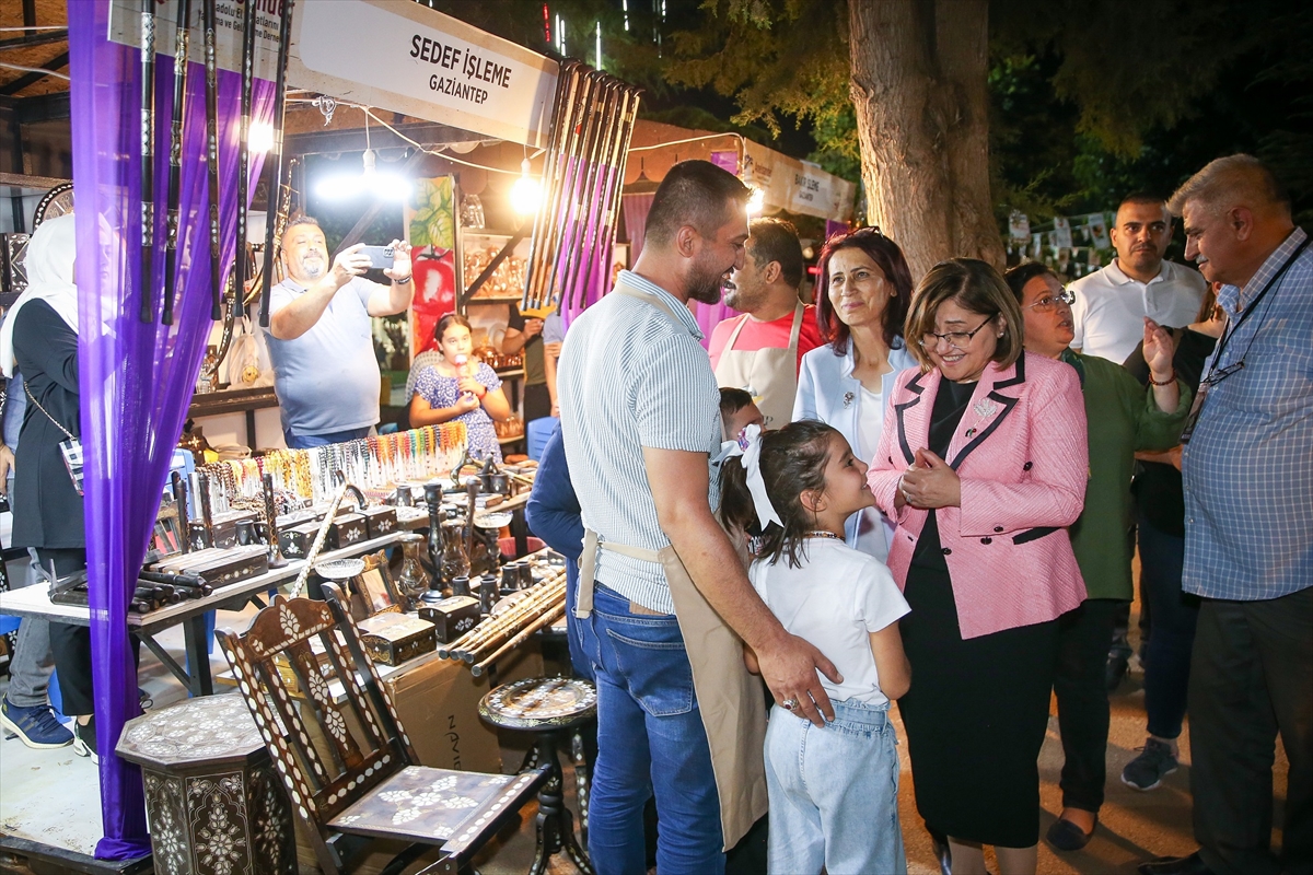 Katılımcılarla hatıra fotoğrafları çektiren, stantlar hakkında bilgi alan Şahin, burada ayrıca Gaziantep'in el sanatlarıyla üretilen ürünleri inceledi, tasarımcılarıyla sohbet etti.
