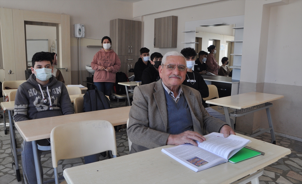 Atakul, ilerleyen yaşına rağmen azmiyle ve derslere ilgisiyle öğrencilere ve çevresine örnek oluyor.