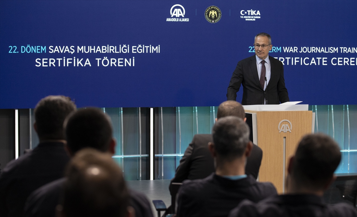 ANKARA (AA) – Anadolu Ajansı (AA), Polis Akademisi ve Türk İşbirliği ve Koordinasyon Ajansı (TİKA) Başkanlığı iş birliğinde düzenlenen "22. Dönem Savaş Muhabirliği Eğitimi"ni tamamlayan 14'ü yabancı uyruklu 25 medya mensubuna sertifikaları verildi.