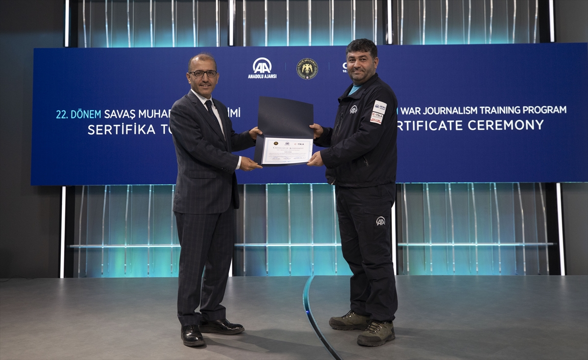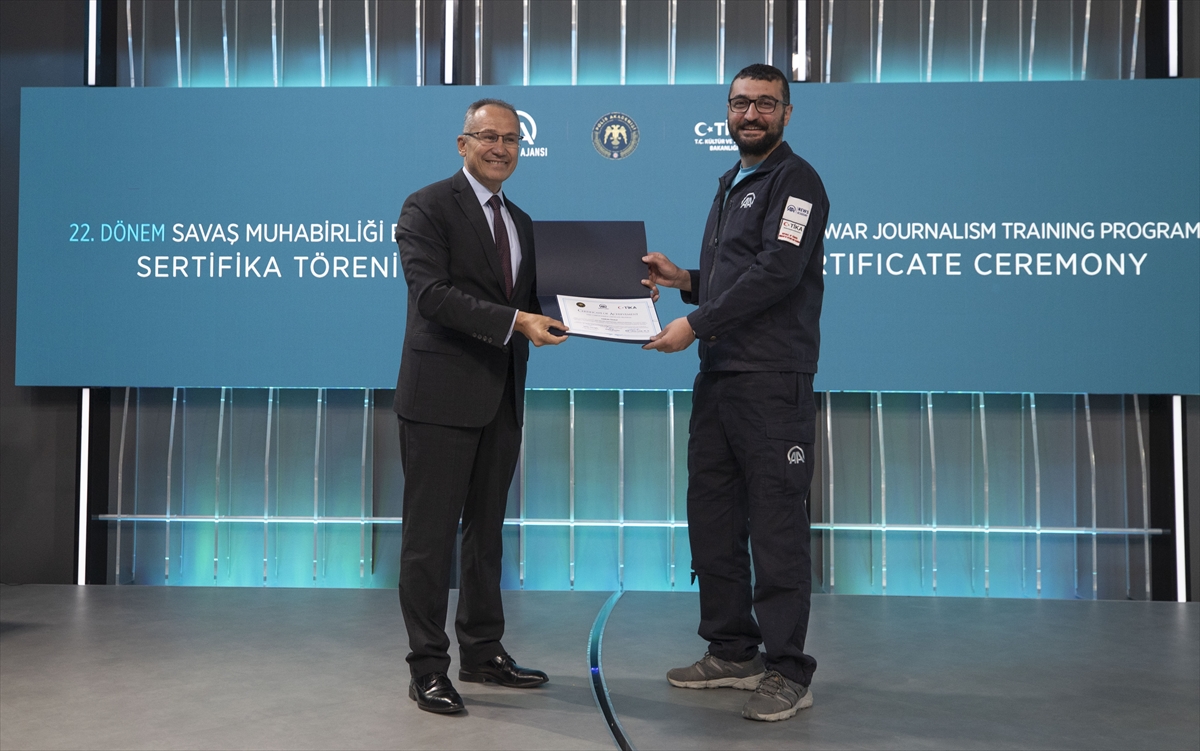 Savaş, afet ve olağanüstü hallerde görev alacak operasyonel muhabirlerin yetiştirilmesi amacıyla 26 Eylül-7 Ekim arasında düzenlenen "22. Dönem Savaş Muhabirliği Eğitimi"nin sertifika töreni, Anadolu Ajansı Genel Müdürlüğünde yapıldı.