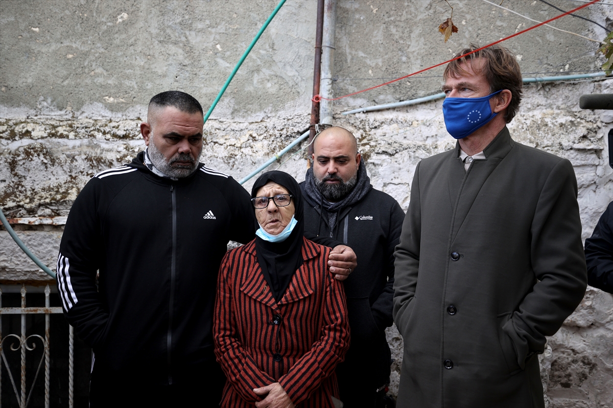 KUDÜS (AA) – Avrupa Birliği (AB) Filistin Toprakları Temsilcisi Sven Kuehn Von Burgsdorff beraberindeki heyetle İsrail'in işgal altındaki Doğu Kudüs'ün Şeyh Cerrah Mahallesi'nde bulunan evleri hakkında tahliye kararı verdiği Filistinli aileyi ziyaret etti.