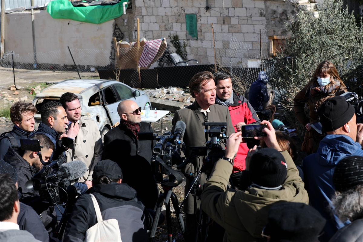 Von Burgsdorff'un yanı sıra AB ülkeleri, BM organları ve İsrailli hak örgütlerinden temsilcilerin bulunduğu heyet Şeyh Cerrah Mahallesi'ndeki Filistinli ailelere yönelik İsrail'in hukuki ve bürokratik uygulamaları hakkında bilgi aldı.