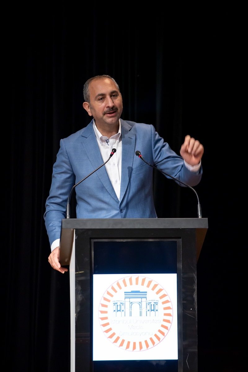 Bakan Abdulhamit Gül, İstanbul Üniversitesi Hukuk Fakültesi tarafından düzenlenen, 150'nin üzerinde hukuk fakültesi öğrencisinin vekil olarak görev aldığı, meclis gruplarına ayrılarak yasa tasarılarını tartıştığı İstanbul Üniversitesi Meclis Simülasyonu etkinliği kapanış programına katıldı.