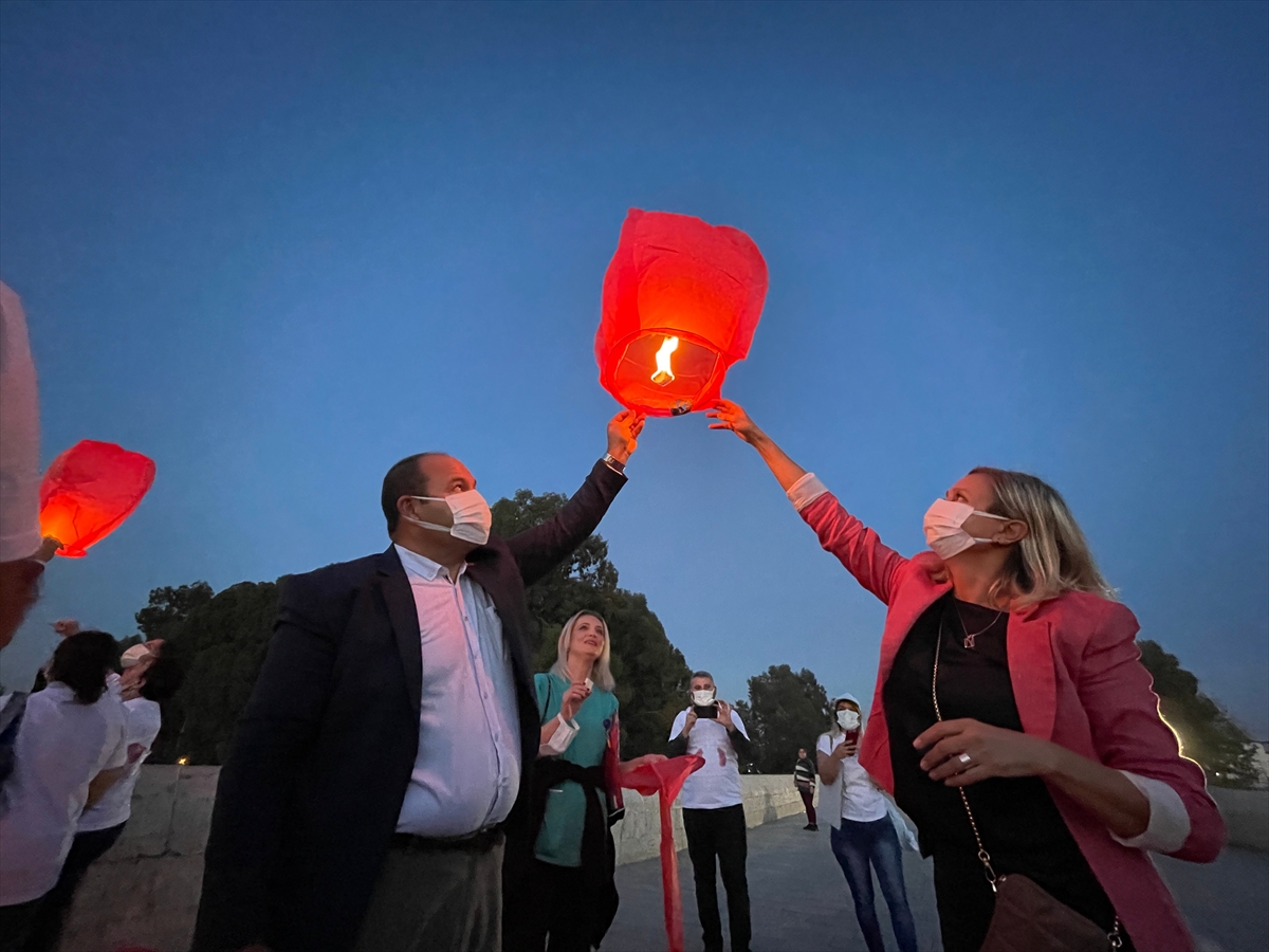Tarihi Taş Köprü üzerinde bir araya gelen vatandaşlar, dilek fenerlerini organ nakli bekleyen hastalar için gökyüzüne gönderdi.