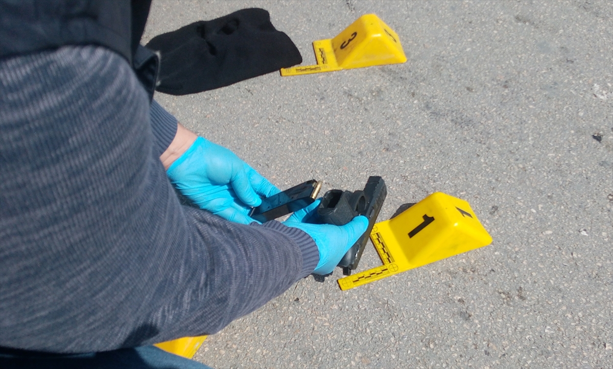 Silahları incelemeye alan polis, ara sokaklara girerek izlerini kaybettiren zanlıları yakalamak için çalışmalarını sürdürüyor.