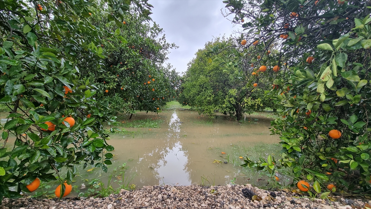 Su altında kalan narenciye bahçelerinde kısmi tarımsal zarar meydana geldi.