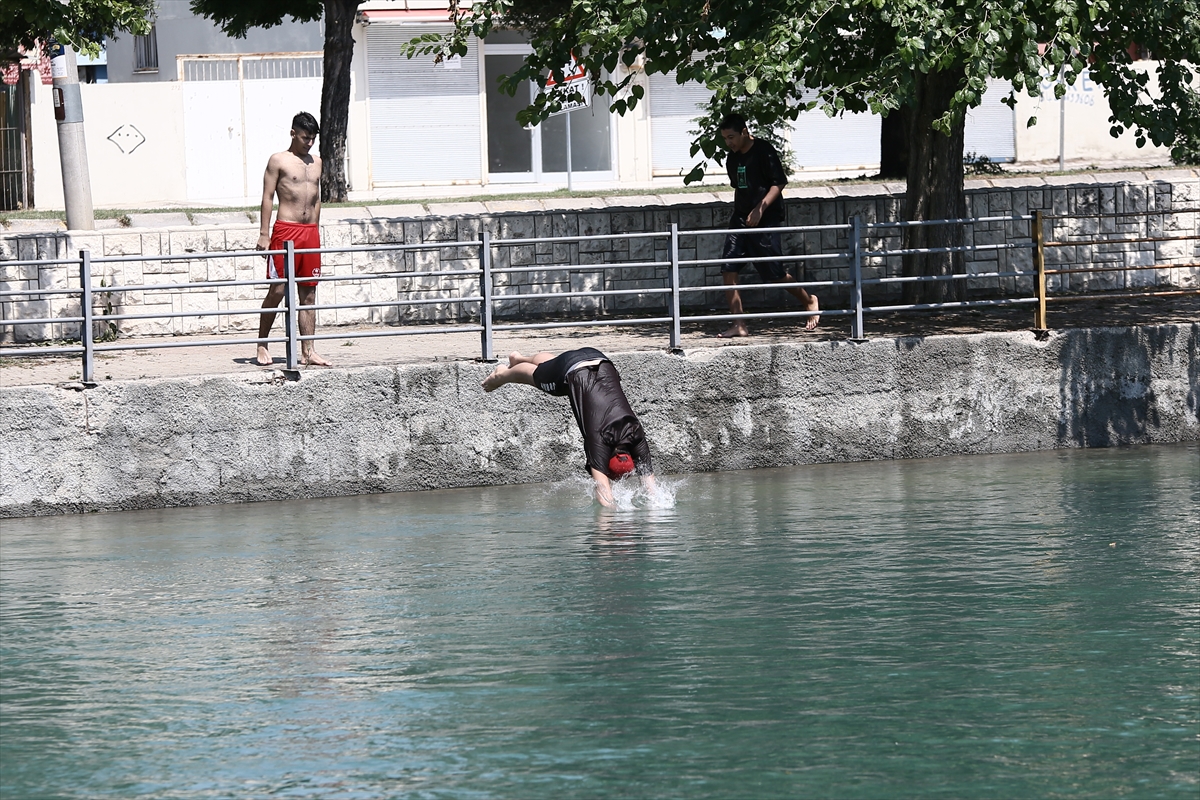 ADANA (AA) – Adana'da etkili olan sıcak havadan bunalanlar sulama kanallarına girdi, park ve bahçelerde gölgelik alanlarda serinlemeye çalıştı.