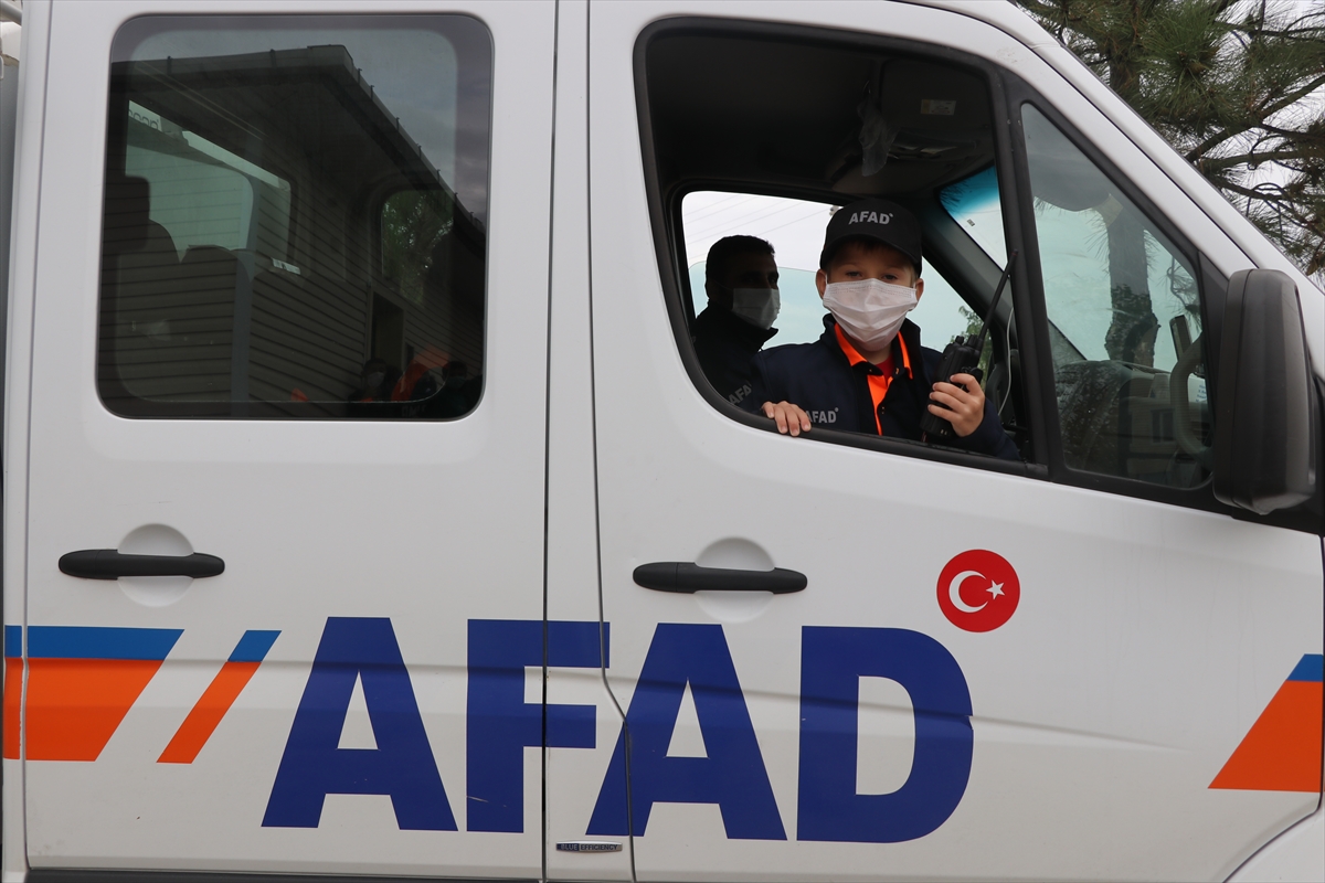 Kendisine evde AFAD üniforması yaptığını anlatan Yüksel, "Önce boyayla montumun arkasına AFAD yazdım, evdeki parlak bantları kollarıma yapıştırdım. Büyüyünce AFAD görevlisi olmak istiyorum. Onlar insanları, hayvanları kurtarıyor. Kaza sonucu sıkışan insanları, çocukları kurtarıyorlar. Ben de hayat kurtarmak istiyorum." diye konuştu.