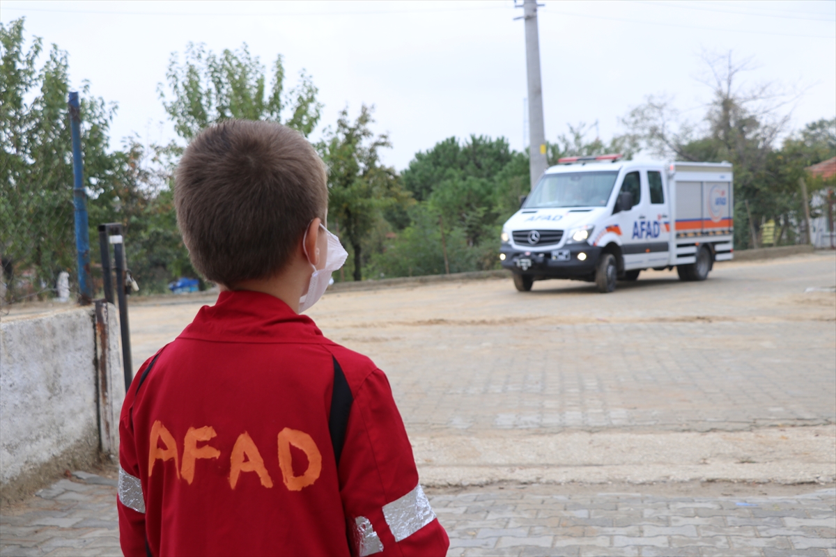 EDİRNE (AA) – CİHAN DEMİRCİ – Afet ve Acil Durum Yönetimi Başkanlığı (AFAD) ekipleri, büyüyünce AFAD görevlisi olmak isteyen 9 yaşındaki Kerem Yüksel'e üniforma armağan etti.