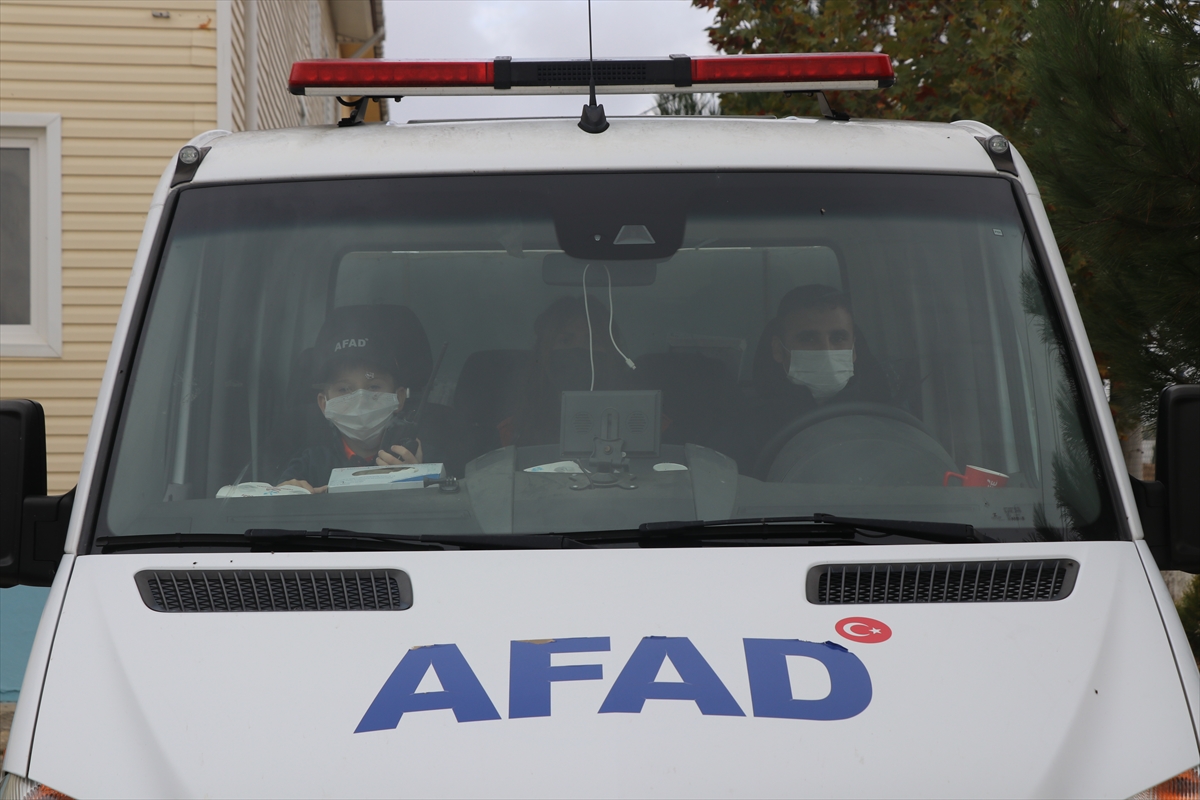 Okul yönetiminin irtibata geçmesi üzerine Edirne İl Afet ve Acil Durum Müdürlüğünden bir ekip, üniforma yaptırdıkları Kerem'i okulunda ziyaret etti.