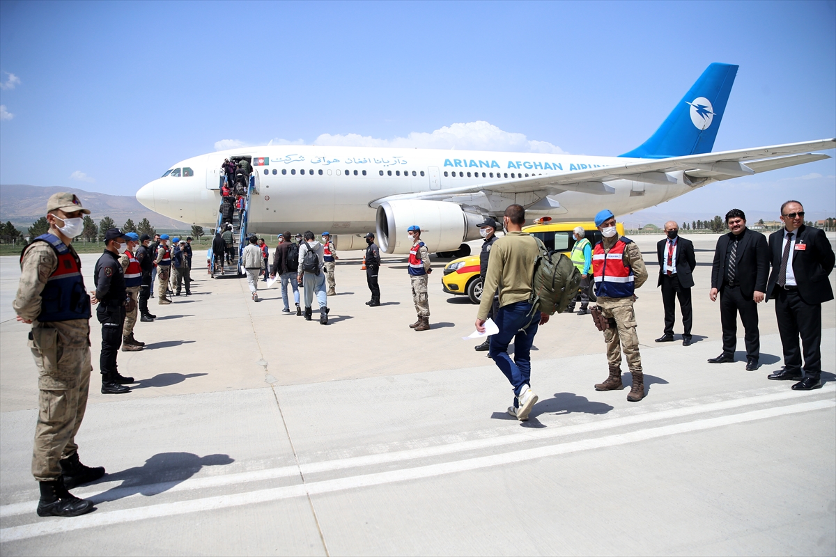 Burada İl Göç İdaresi ekiplerince şahsi eşyaları teslim edilen ve seyahat işlemleri tamamlanan düzensiz göçmenler, jandarma ve polis ekiplerinin oluşturduğu güvenlik koridorundan geçerek Afganistan Hava Yollarına ait uçağa alındı.