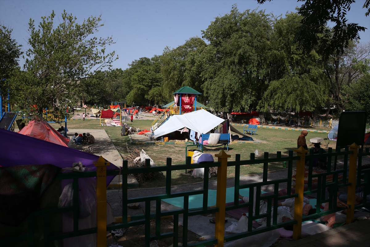 Basın Kulübü önündeki yeşillik alana ve buradaki parka yerleşen Afganlar, sıcaklığın 40 dereceyi aştığı yaz aylarında kurdukları derme çatma çadırlarda yaşamaya çalışıyor.