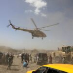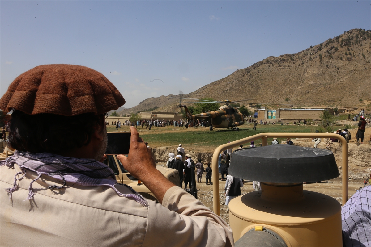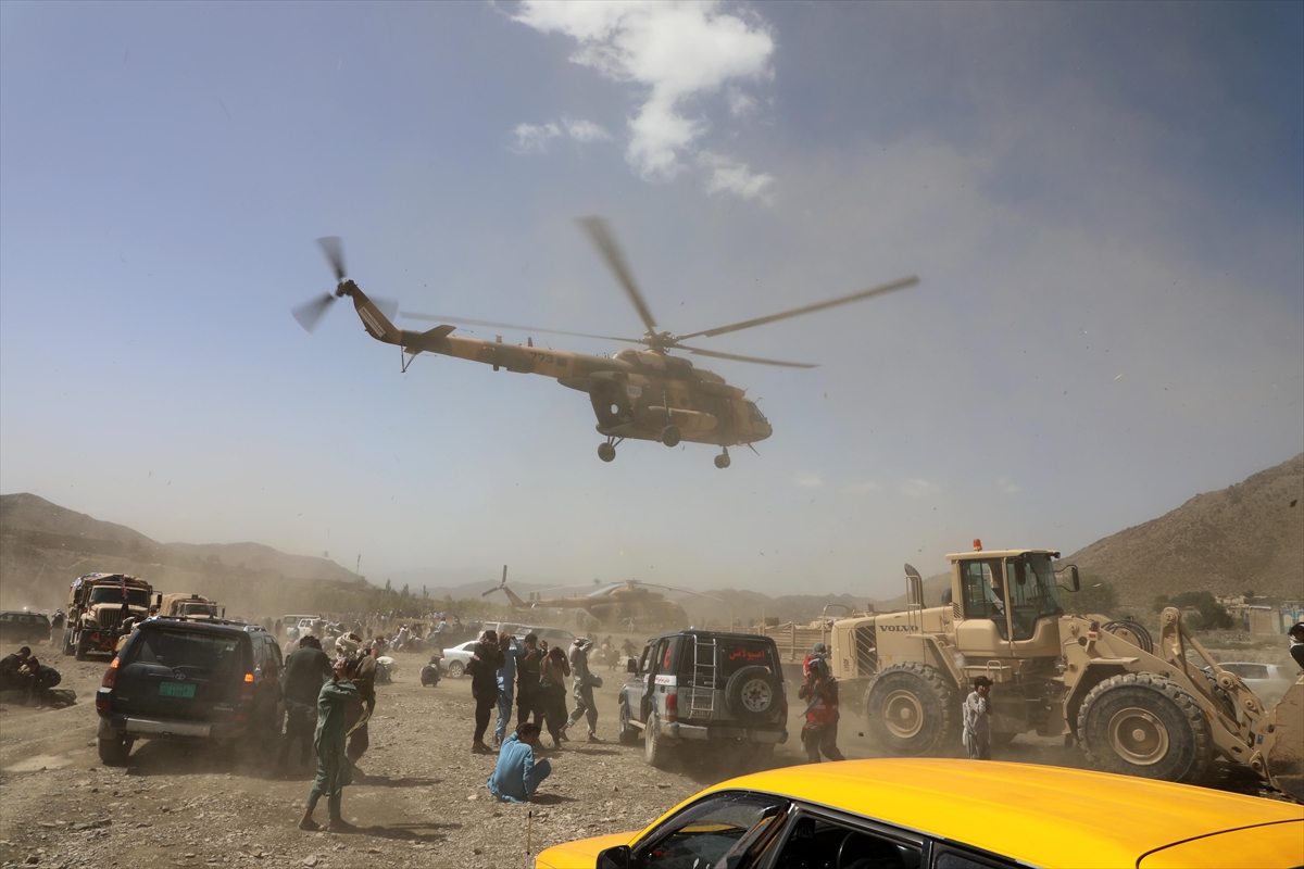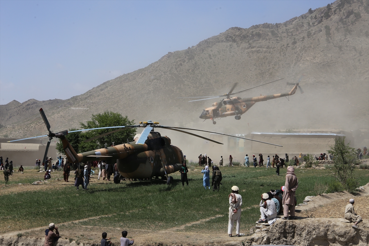 Giyan ilçe merkezine, gün boyu, deprem nedeniyle çeşitli ülkelerden Afganistan'a gönderilen insani yardımları taşıyan helikopterler indi.
