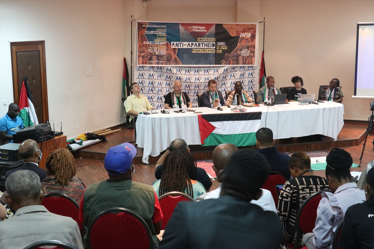 Pan-Afrika Filistin Dayanışma Ağı (PAPSN) tarafından "Afrika'dan Filistin'e Apartheid'e karşı birlik" temasıyla Dakar'daki Basın Evi'nde düzenlenen etkinliğe, Güney Afrika, Sudan, Tanzanya, Nijerya ve Zimbabve'nin arasında bulunduğu Afrika'daki 20 ülkeden aktivist ve davetli katıldı.