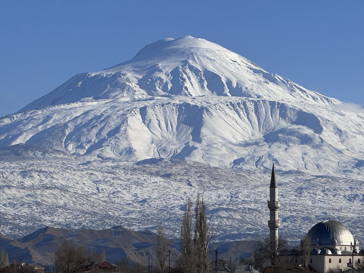 Yağış 5 bin 137 metre rakımlı Ağrı Dağı'nı ve eteklerini beyaza bürüdü.