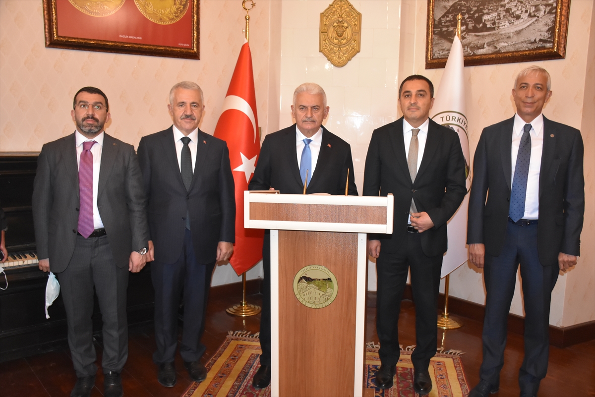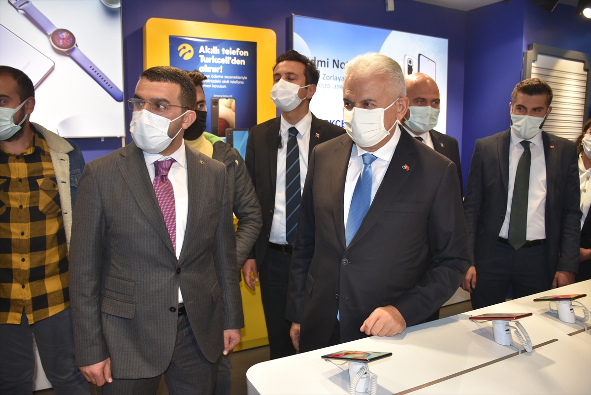 Kars Kafkas Üniversitesinin 2021-2022 akademik yılı açılış töreni ve AK Parti Kars İl Başkanlığı binasındaki partisinin İl Danışma Meclisi Toplantısı'nda katılmak üzere kente gelen AK Parti Genel Başkanvekili Binali Yıldırım, ardından esnaf ziyaretinde bulundu.