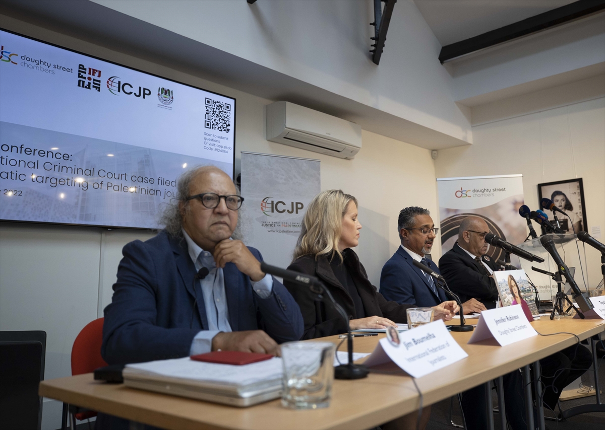 Başkent Londra'da insan hakları avukatları, Uluslararası Gazeteciler Federasyonu (IFJ), Filistin Gazeteciler Sendikası (PJS) ve Uluslararası Filistinliler Adalet Merkezinden (ICJP) temsilciler, düzenledikleri basın toplantısında, İsrail'in Filistin'de çalışan gazetecileri hedef alması ve medya çalışanlarının öldürülmesi olaylarını gerektiği gibi araştırmamasına karşı nisanda UCM'ye yaptıkları şikayete ilişkin güncel açıklamalarda bulundu.