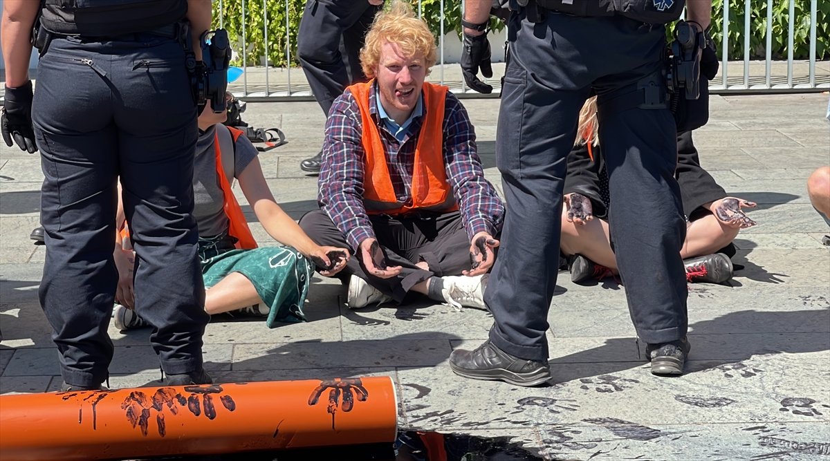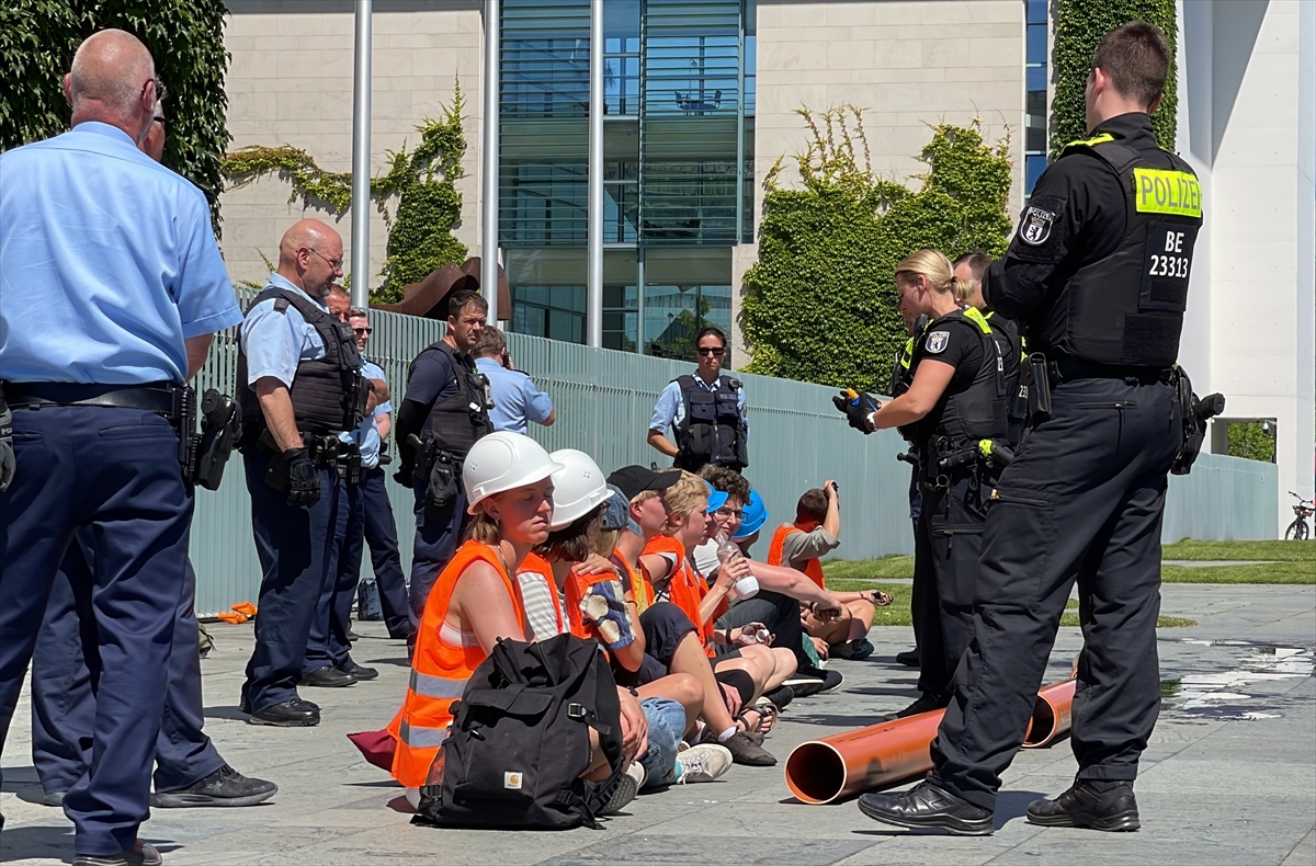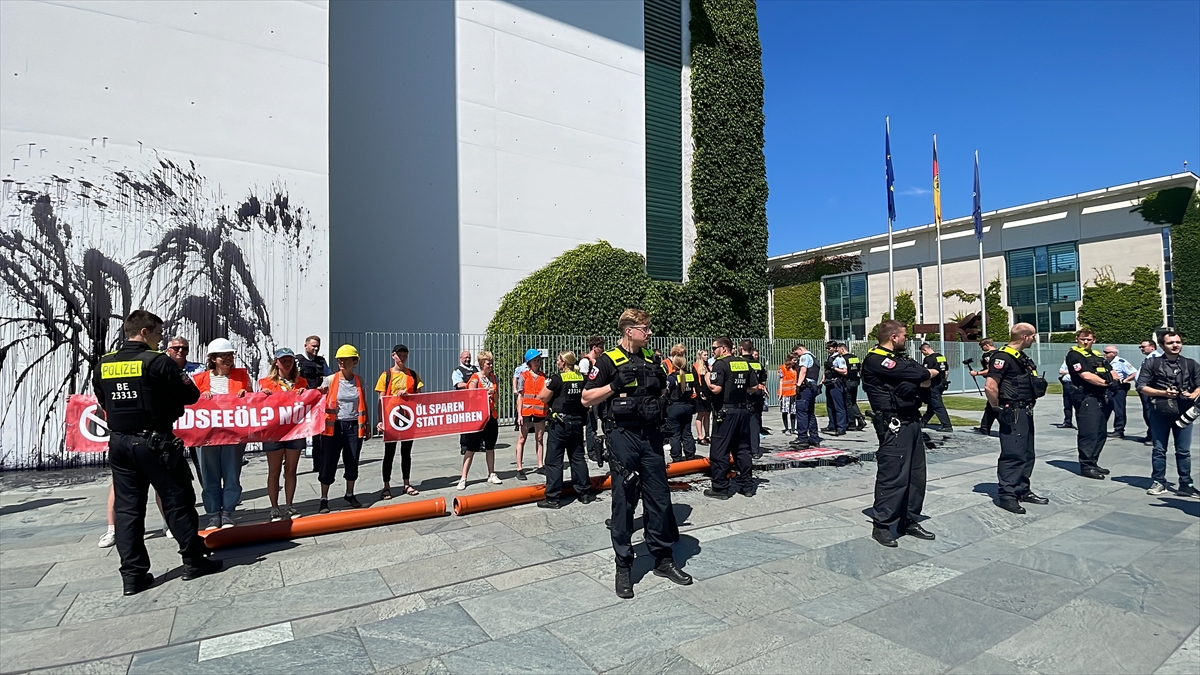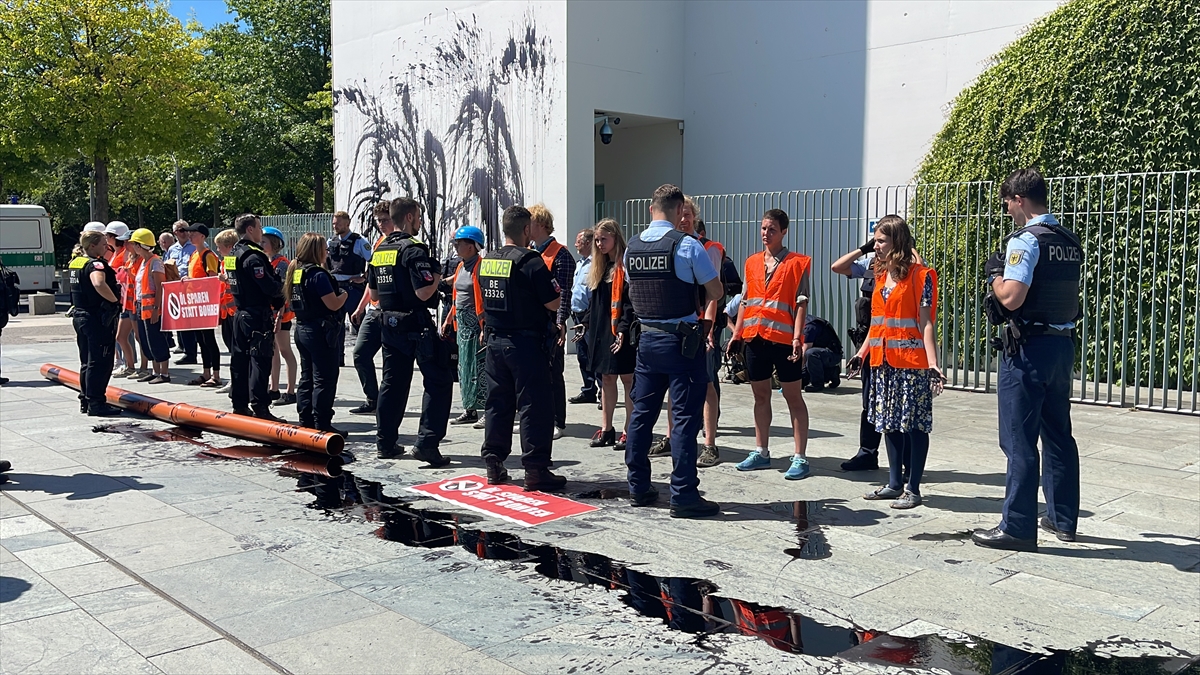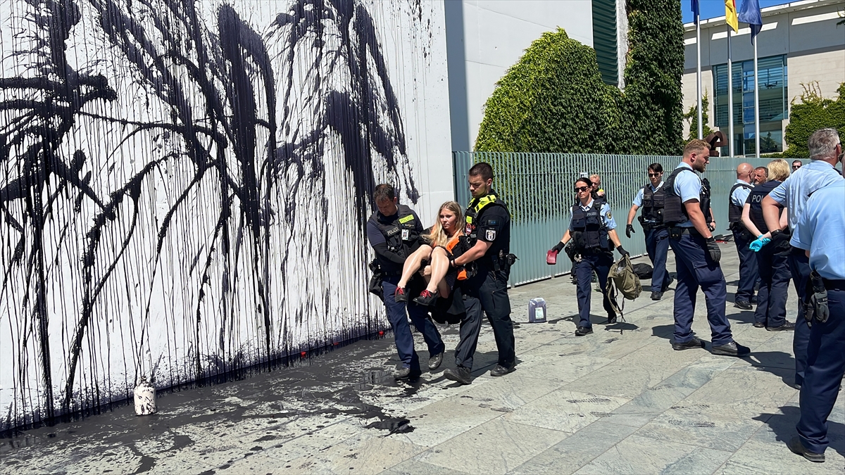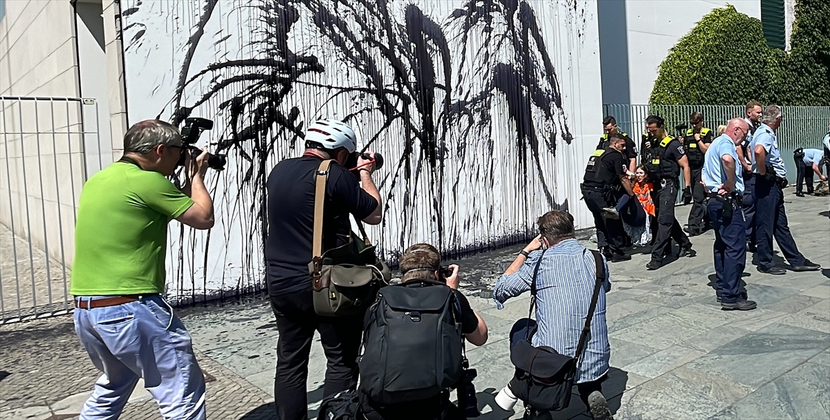 BERLİN (AA) – Almanya'da "Letzte Generation" (Son Nesil) adlı çevreci grup, hükümetin Kuzey Denizi'nde petrol arama planlarını protesto ederek Başbakanlık binasının dış cephesinin bir bölümünü siyah renkle boyadı.