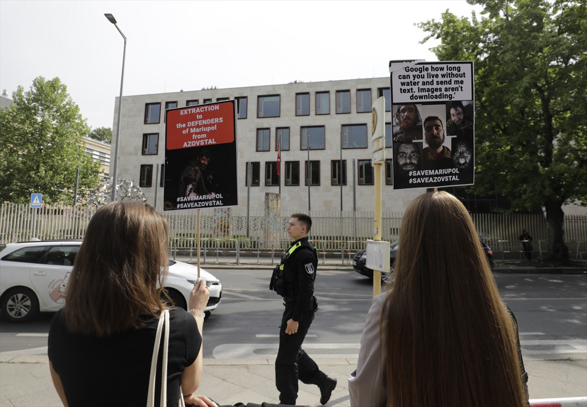 Göstericilerden Eva Yakubovska, Rusya'nın uzun süredir kuşatma altında tuttuğu Mariupol kentinde sıkışan bazı Ukraynalılar için 2 hafta önce de Türkiye'nin Berlin Büyükelçiliği önünde yardım çağrısı yaptıklarını belirterek, "İnsanlar 2 aydan fazla Mariupol kentinde sıkışmış durumda. İnanılmaz bir şey. Bu insanlar su ve gıda bulmak zorunda. 500 sivil de kentte sıkışmış durumda." dedi.