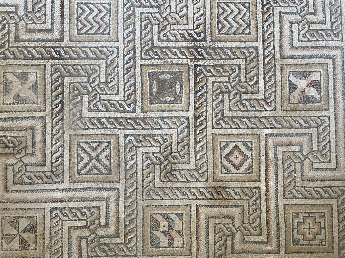 "Sobesos, tarihi kaynaklarda adı bilinen ama bulunamayan özel bir yer idi. 2002 yılında kaçak kazı çalışmalarında ortaya çıkıyor. Burada çok özel mozaiklerin olduğunu görüyoruz. Tabanına baktığımız zaman geometrik desenlerde daha çok renkli taşlar ve cam kullanıldığını görüyoruz. Geometrik desenlerde sivastika dediğimiz Hindistan kökenli bir desen ile Helenistik döneme ait mendereslerin büklüm büklüm akmasından esinlenerek yapılmış meander desenini görüyoruz. Bu, aşkı sembolize eder, başı ve sonu yoktur."