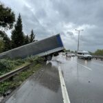 Otoyolun Ankara istikametinde seyir halindeki B.H'nin kullandığı 34 DBR 320 plakalı boş kasa yüklü tır, Sapanca gişeleri mevkisinde yağışın da etkisiyle kontrolden çıktı.