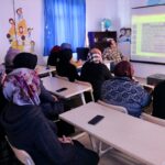 Kadınlar 3 hafta sürecek kursta hayvancılıkla ilgili bilgilendirilirken, bazılarının okula el ele geldikleri çocukları yan sınıflarda eğitimlerini sürdürüyor.