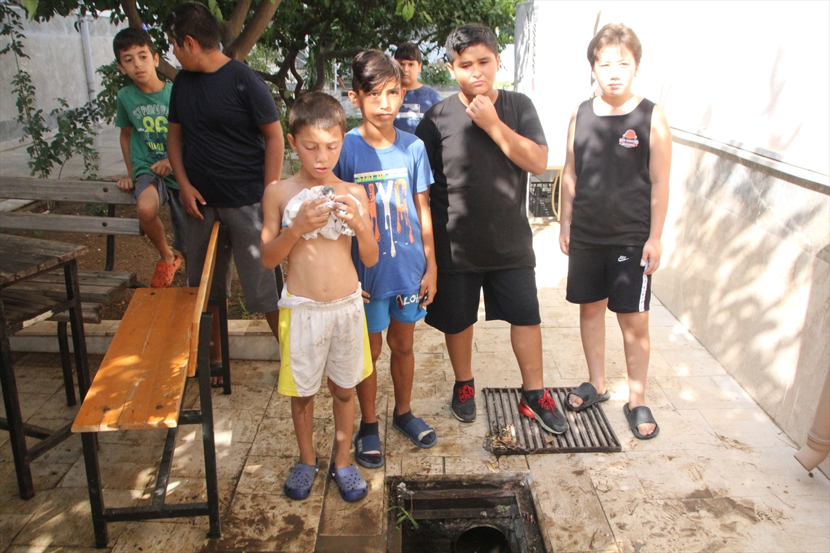 Orta Mahalle'de Serik Müftülüğünün bahçesindeki rögardan kedi seslerinin geldiğini fark eden çocuklar yavruları kurtarmak istedi.