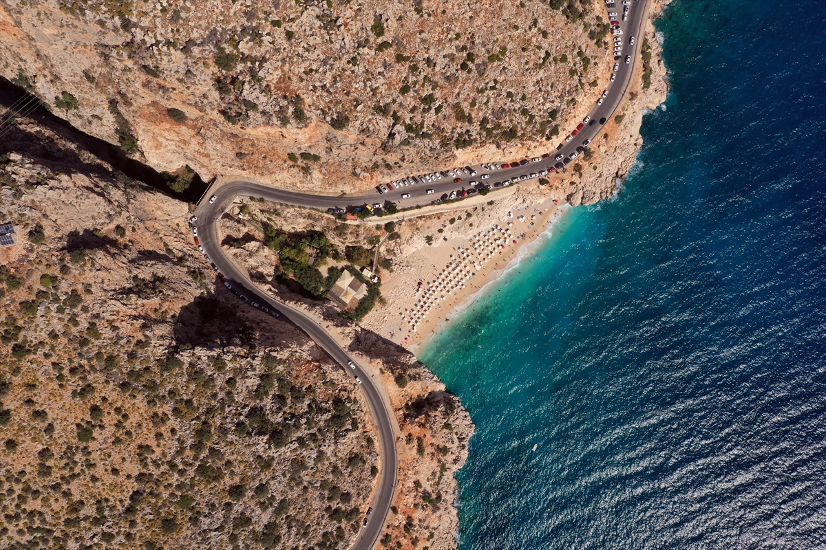Turkuaz rengi suyu ve altın sarısı kumlarıyla ünlü Kaş ilçesindeki Kaputaş Plajı'nda da yoğunluk yaşandı.
