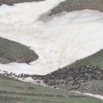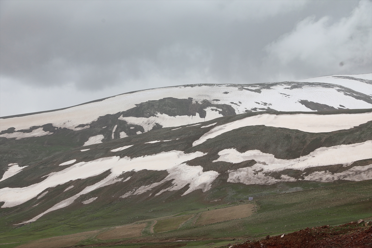 IĞDIR (AA) – HÜSEYİN YILDIZ – Iğdır'da bir yanı yeşillenen, diğer tarafında kar bulunan yüksek rakımlı köylerde iki mevsim bir arada yaşanıyor.