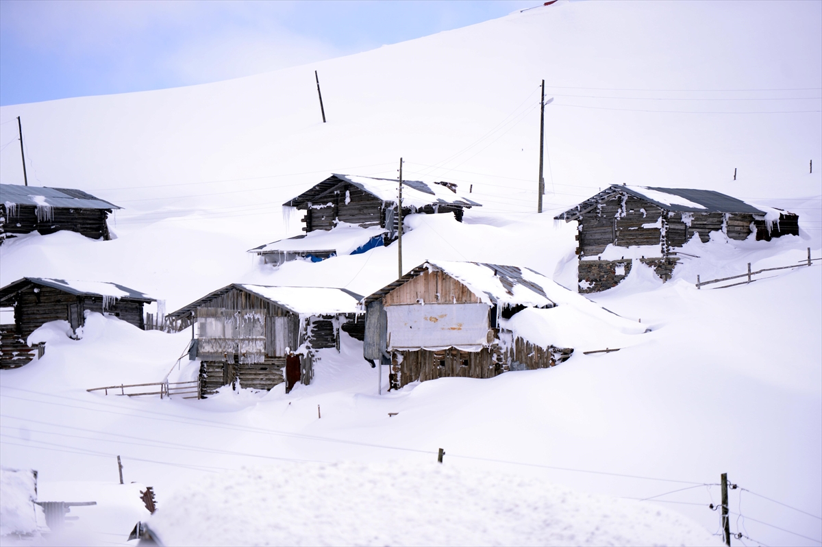 ARDAHAN (AA) – Ardahan'ın yüksek kesimlerinde yoğun kar yağışı nedeniyle yayla evleri beyaz örtüyle kaplandı.
