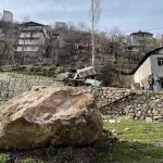 Temel Ayık da yamaçtan düşen kaya kütlesinin evlerinin yanından geçerek babasına ait tarlaya düştüğünü söyledi.
