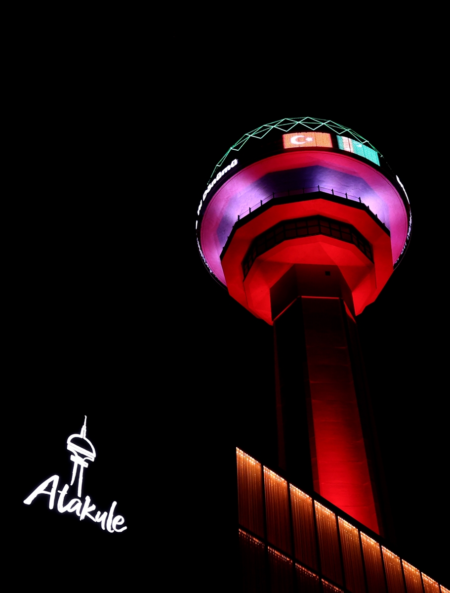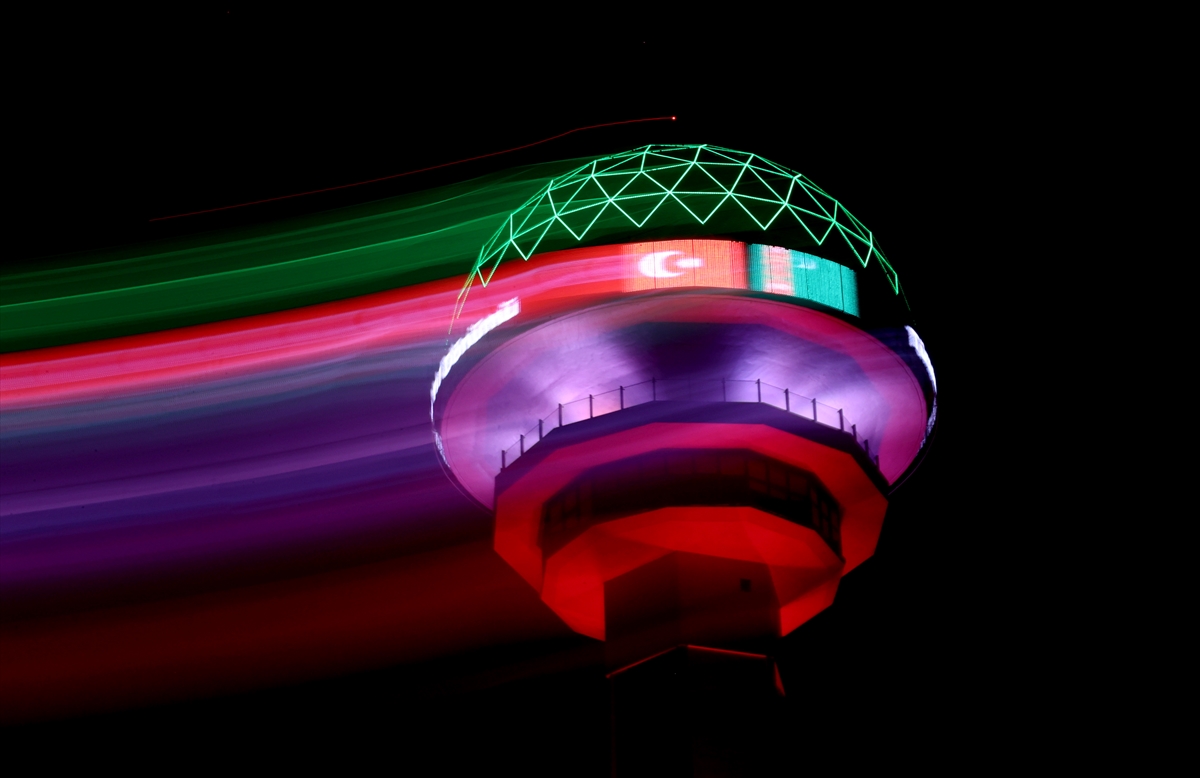Önemli günlerde renk ve ışık gösterilerine sahne olan Atakule, bu akşam Türkmenistan'ın bayrak renkleriyle ışıklandırıldı.