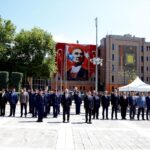 Vilayet Meydanı'ndaki Atatürk Anıtı'na çelenk bırakılmasının ardından saygı duruşunda bulunulan törende, İstiklal Marşı okundu.