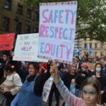 Gösteride kürsüye çıkan konuşmacılar, Avustralya Başbakanı Scott Morrison'u, iş yerlerinde kadınların çalışma güvenliğini, eşitliğini ve saygı kurallarını düzenleyen kanunların çıkarılmamasından sorumlu tuttu.