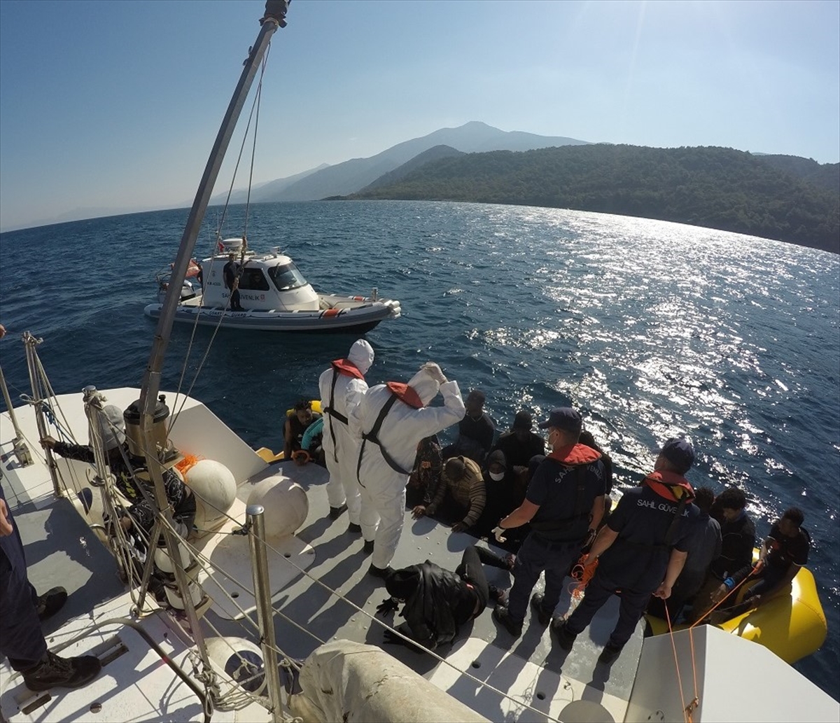 AYDIN (AA) – Aydın'ın Kuşadası ilçesi açıklarında Yunanistan unsurlarınca geri itilen 53 düzensiz göçmen kurtarıldı, yasa dışı geçiş yapmaya çalışan 48 düzensiz göçmen yakalandı.