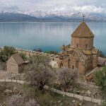Gevaş ilçesinden 20 dakika süren tekne yolculuğunun ardından ulaşılan ada, Artos Dağı'nda henüz erimeyen kar örtüsü ve badem ağaçlarının oluşturduğu renk cümbüşü ile güzelliğine güzellik katıyor.