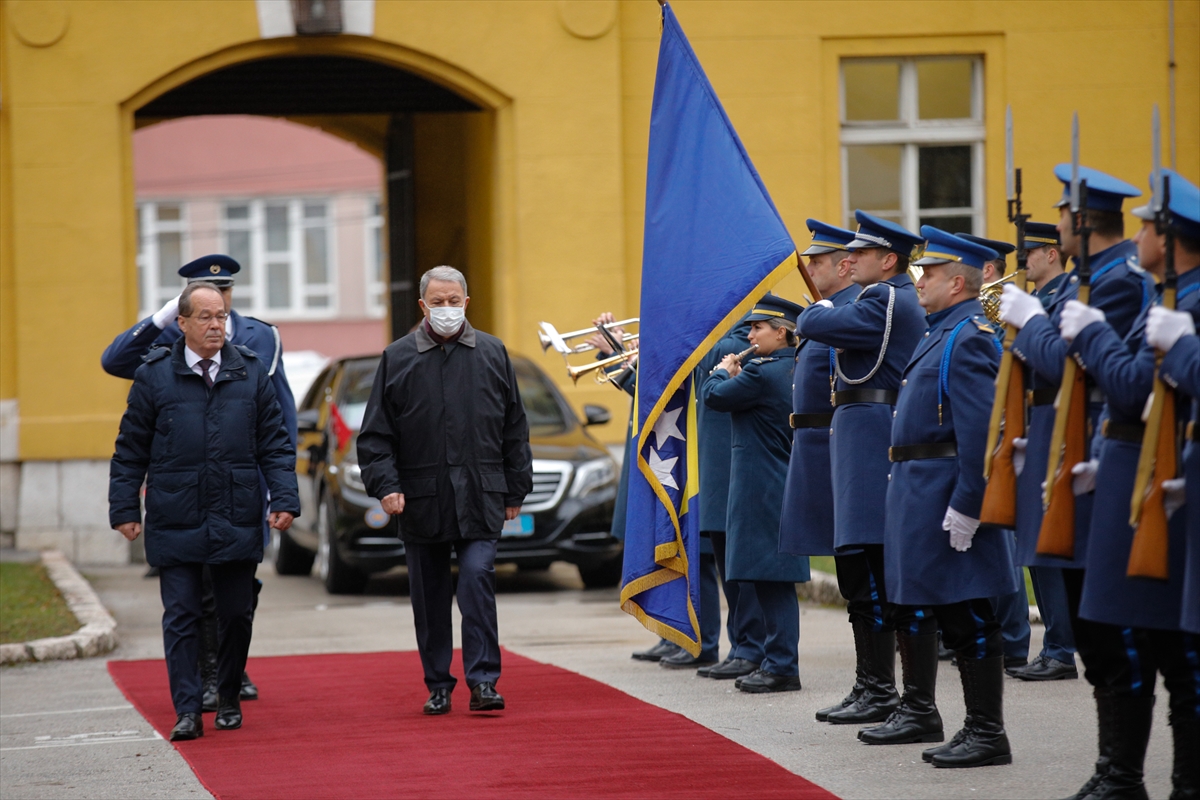 Akar, resmi ziyaret kapsamında bulunduğu başkent Saraybosna'da, Kovaçi Şehitliği'ni ziyaretinin ardından Bosna Hersek Savunma Bakanlığına hareket etti.