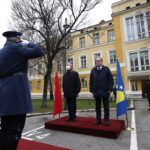 Savunma Bakanı Podzic tarafından askeri törenle karşılanan Akar, tören kıtasını selamladı.