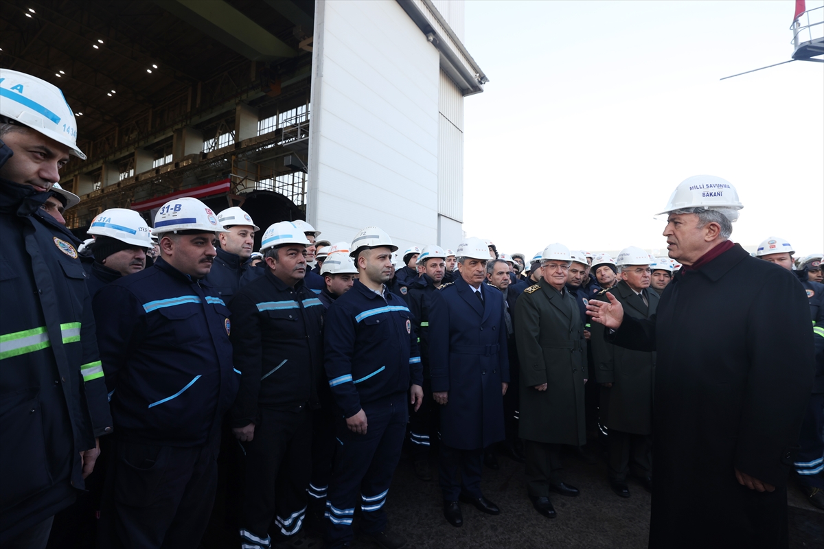 KOCAELİ (AA) – Milli Savunma Bakanı Hulusi Akar, Gölcük Tersanesi Komutanlığında işçilerle bir araya geldi.